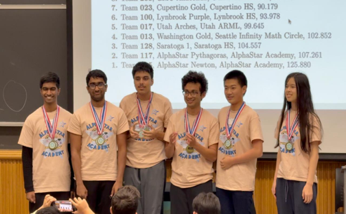 Archimedes Division: A* Bay Area Be Chen – 6th place, A* Bay Area XLII – 14th place, A* Trojans – 16th place, A* Orange Juice – 18th place Bernoulli Division: A* SSA-Tucson – 2nd place Perfect scores in the individual round: Anthony Chen, Eugene Chen, Kevin Zhang, Lewis Chen, Nikhil Buduma, Varun Mohan, William Xue